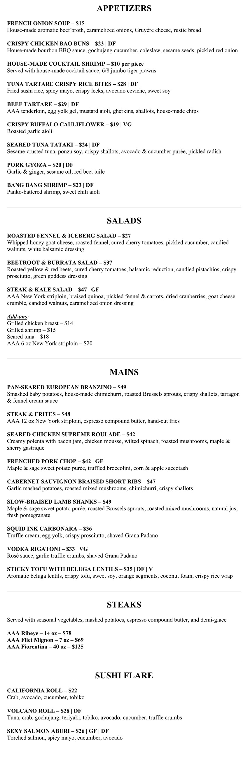 Dinner Menu